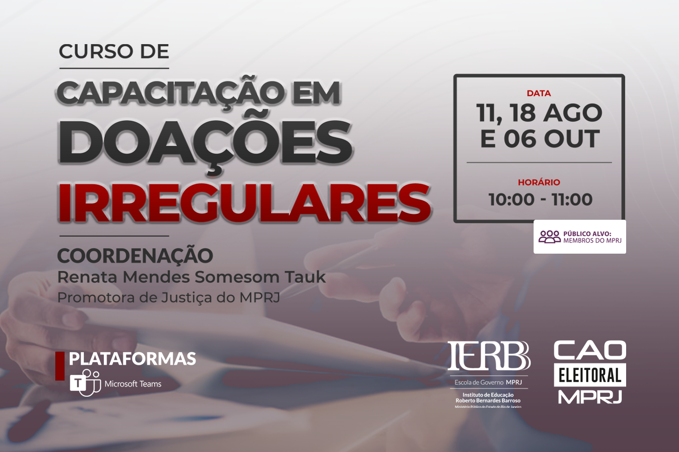 NOTÍCIA: IERBB/MPRJ e CAO Eleitoral oferecem curso sobre doações irregulares